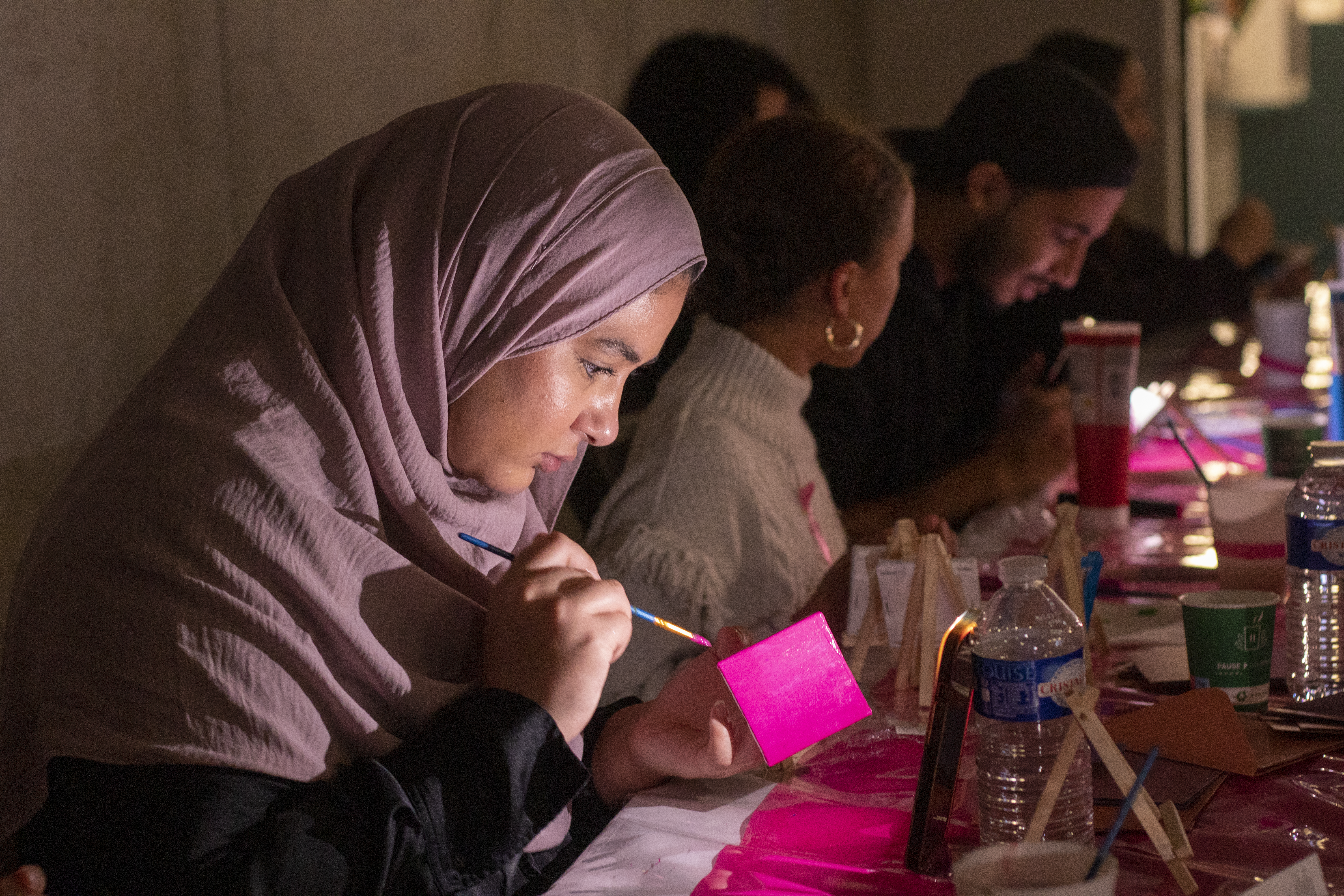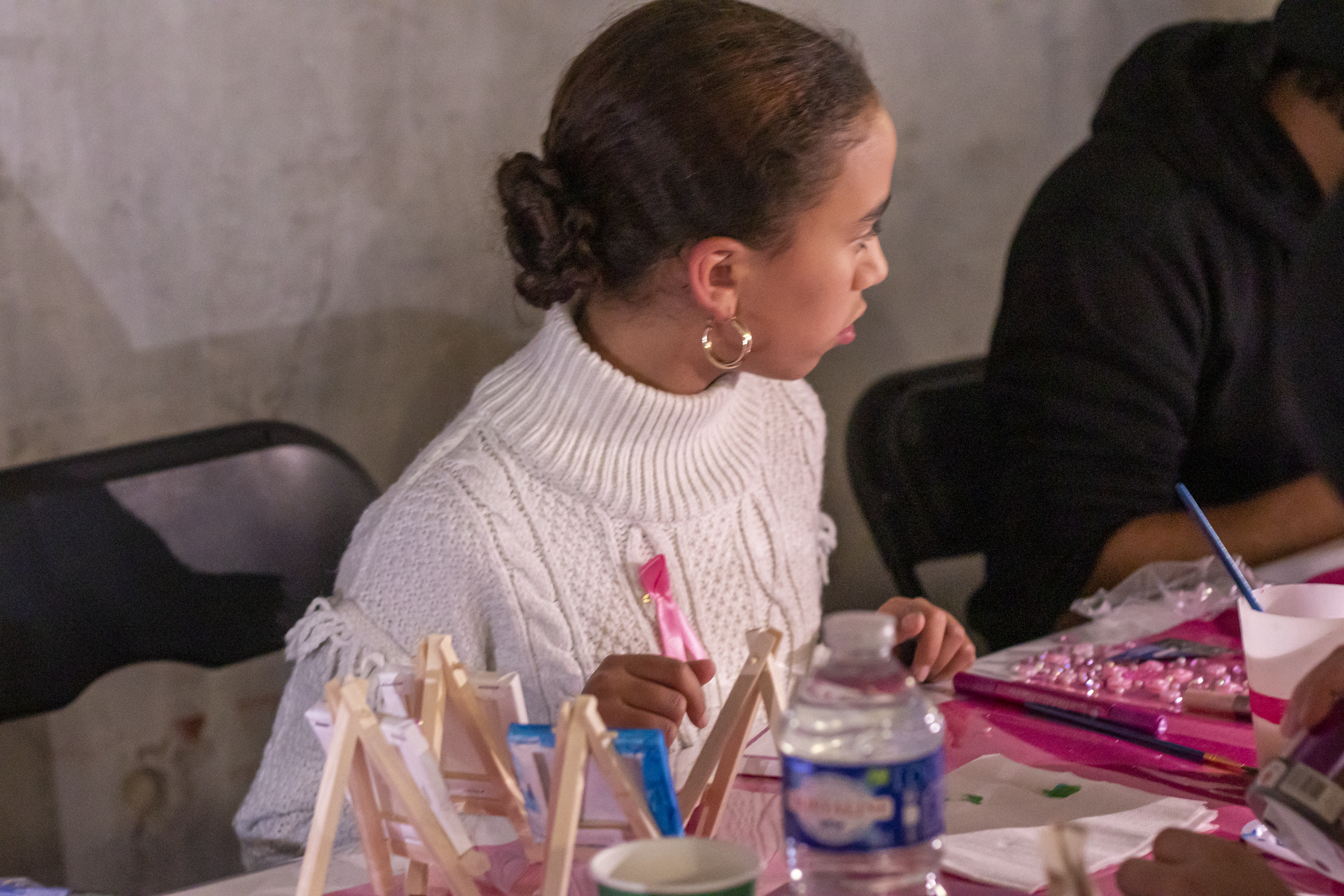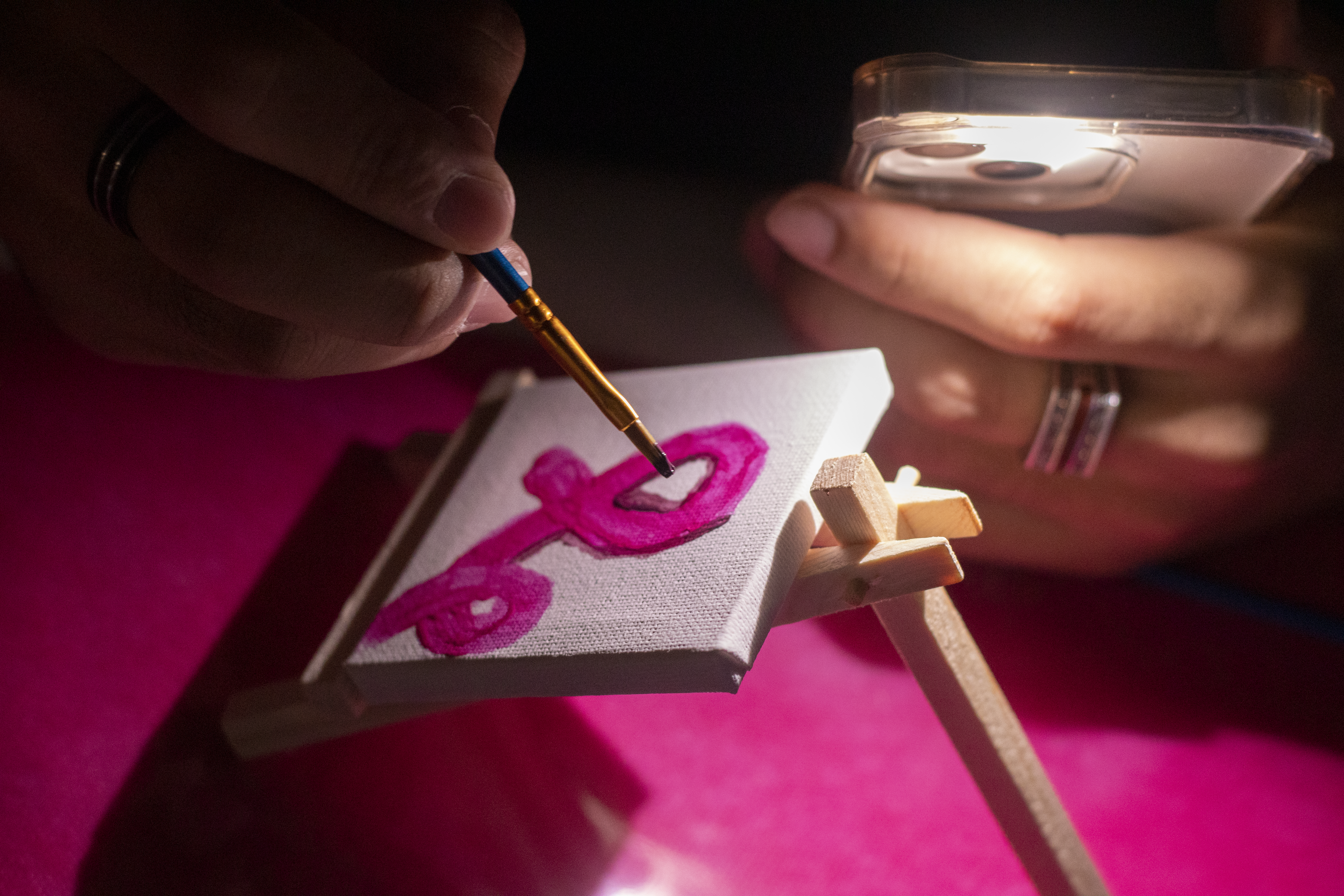 2ème activité : « peinture solidaire » nous avons pu exprimer en peinture ce que représente pour nous le cancer du sein.